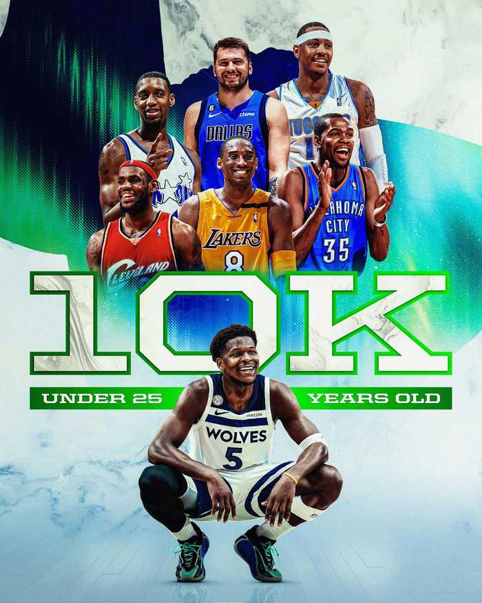#爱德华兹NBA历史第三年轻万分先生#爱德华兹达成10000分里程碑!