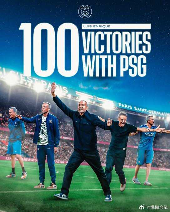 【巴黎主帅恩里克带队取得百胜】147场100胜27平20负,带队拿到队史第一个欧冠冠军。